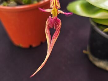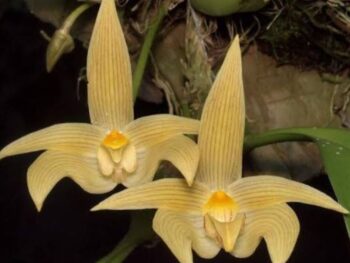 Bulbophyllums Orchids, also known as ‘Bulbos’, are popular with collectors thanks to their variety and unusual flower shapes and colours. There are over 2,000 species in this genus, making it the largest in the orchid family. They thrive in high humidity, so if you are in a southern state this one will do best in a greenhouse. They prefer filtered light and lots of water. Annie’s Exotic Orchids has over 25 Bulbophyllums species, which can be shipped around Australia, excluding Western Australia* and Tasmania.