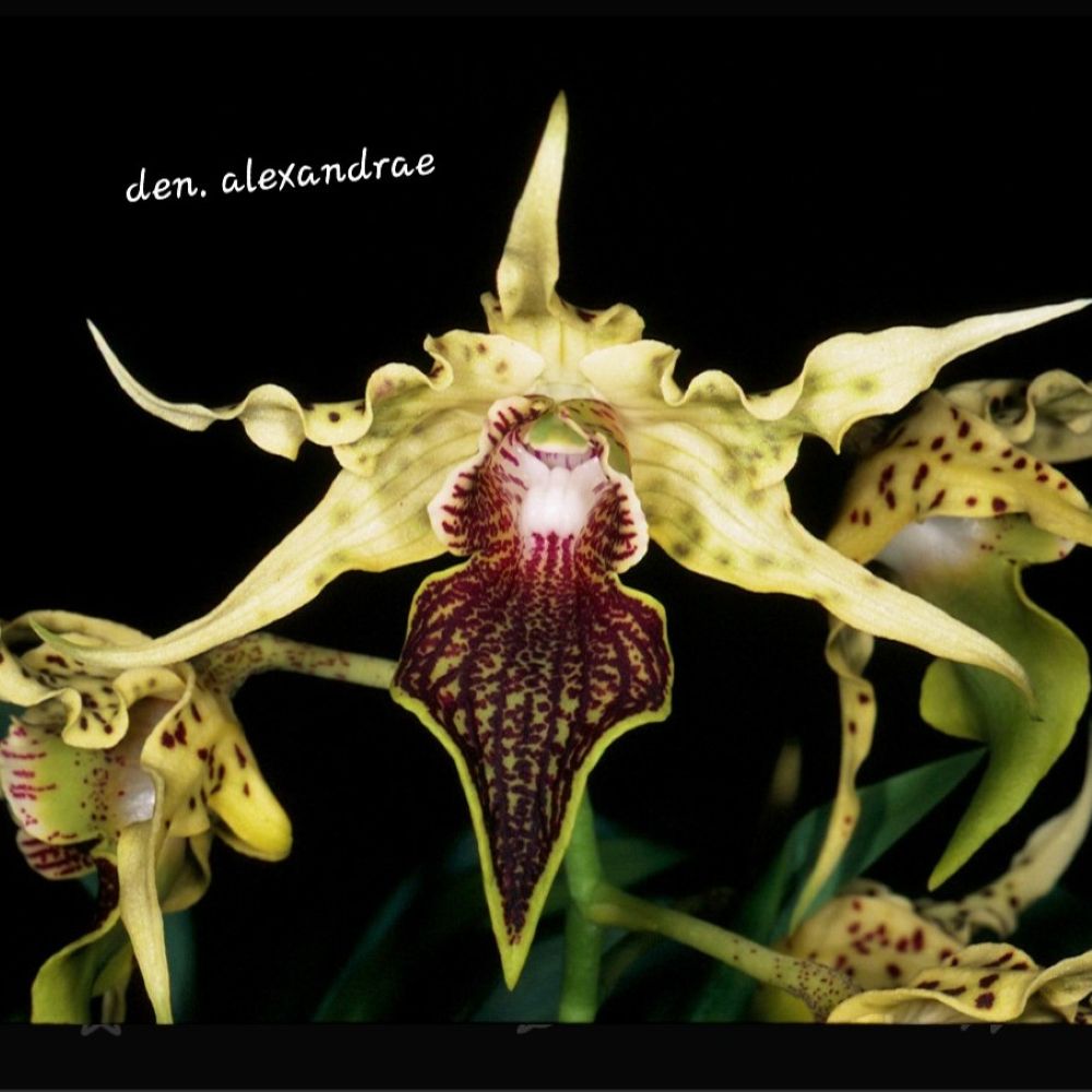 Dendrobium alexandrae is a striking epiphytic orchid native to Papua New Guinea, known for its grotesquely beautiful flowers and cool-growing habitat.