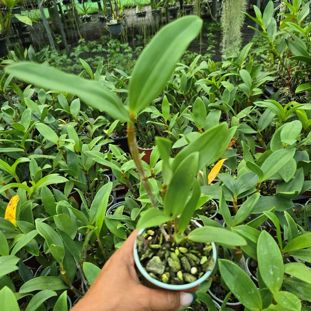 This is a fantastic species from section densiflora, and is native to Hainan China and Vietnam. It is a cool to warm grower that produces clusters of pendulous flowers off of the mature canes. Grow in medium light levels. This species typically flowers between April and June.