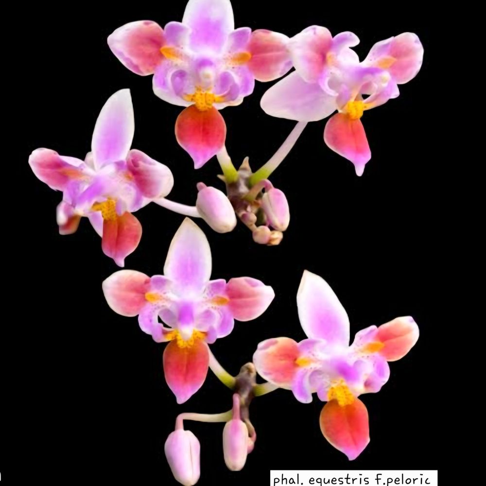 Phalaenopsis celebensis × equestris f. peloric is a compact, highly variable primary hybrid that blends the mottled-leaf elegance and cool-toned flowers of celebensis with the vigour, floriferousness, and peloric mutation of equestris f. peloric. The result is a hybrid that can produce wonderfully quirky, patterned, and unusually shaped blooms—exactly the kind of unpredictable beauty that tends to appeal to collectors who enjoy distinctive traits.