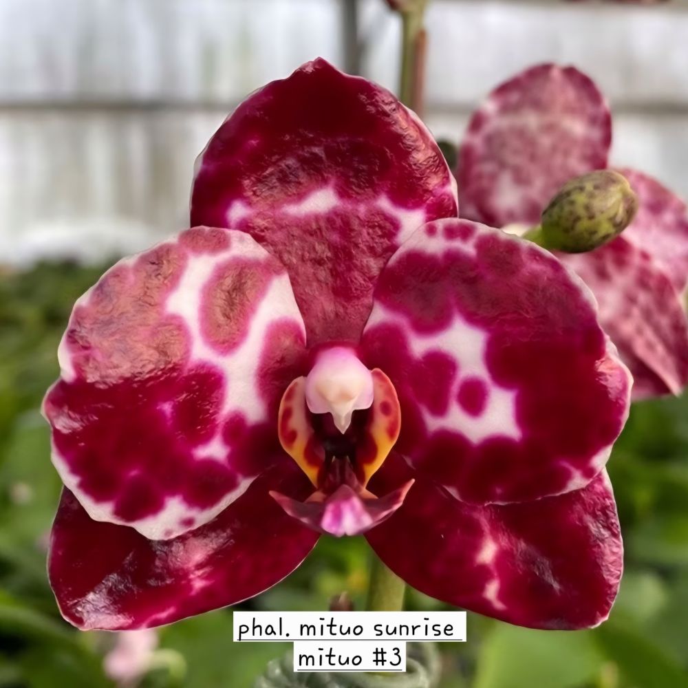 Phalaenopsis Mituo Sunrise ‘Mituo #3’ × (Golden Peoker × Yungho Gelb Canary) This is a warm‑growing novelty Phalaenopsis combining three powerful colour lines: