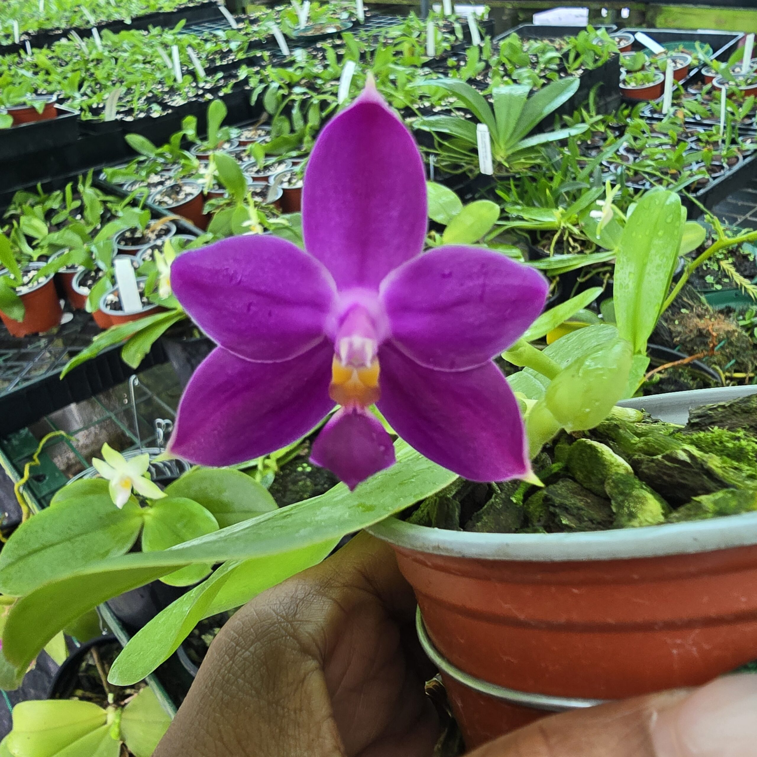 Phalaenopsis violacea ‘Indigo’ is a hot‑growing, fragrant Malaysian species with violet–purple, star‑shaped flowers and green‑tipped petals, thriving in warm, humid, shaded conditions. and a strong sweet fragrance.