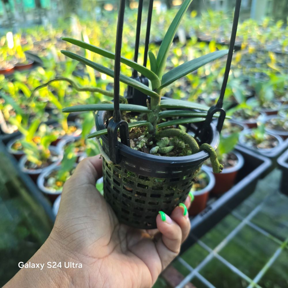 This is a Philippine species from the island of Luzon at elevations up to 500 meters that is a medium sized, hot growing epiphyte with a long stem carrying many, distichous, approximate, ligulate, unequaly and obtusely bilobed apically, coriaceous leaves that blooms on an axillary, suberect, simple, 1 1/2′ [45 cm] long, laxly racemose inflorescence that has tubular bracts, occuring in the late winter and spring with many [6 to 30], non-fragrant, long-lasting flowers. It is a monopodial, vandanaceous, medium sized epiphyte with an axillary inflorescence and does best in a wood slat basket with little or no medium.