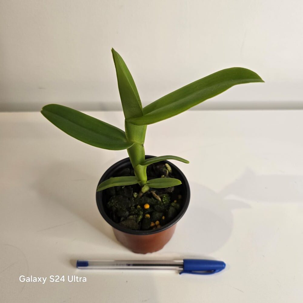 Found in Papua and New Guinea and the Philippines as an epiphyte at elevations over 350 meters occuring on tree trunks as a medium sized, hot to warm growing epiphyte with rather broad, strongly compressed, ancipitous stems carrying several, leathery, 2 ranked, at right angles to the stem, basally clasping leaves that blooms in the fall, winter, spring and summer on a racemose, conical, pendulous, 2.4 to 4″ [6 to 10 cm] long, successively many flowered inflorescence that has a third of the flowers open at any one time.
